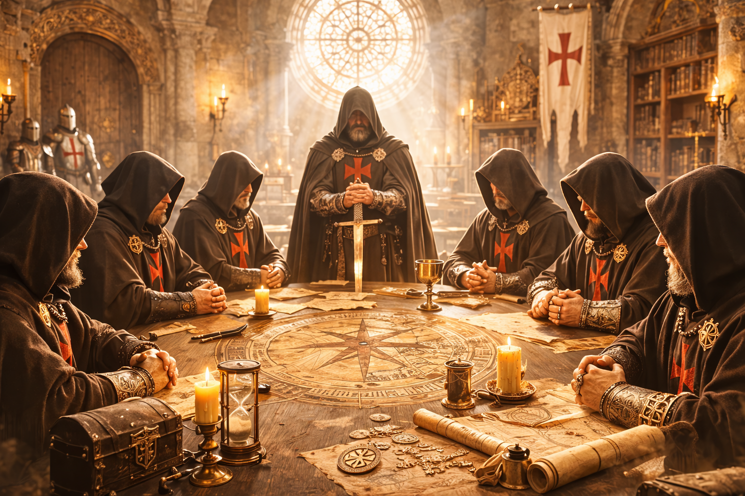 Řád templářů (celým názvem Chudí rytíři Krista a Šalomounova chrámu) vzniká kolem roku 1119 s cílem chránit křesťanské poutníky mířící do Jeruzaléma. Zprvu jej tvoří jen devět lidí, ale jejich počet záhy raketově roste. Stejně tak se prý rozrůstá bohatství řádu.