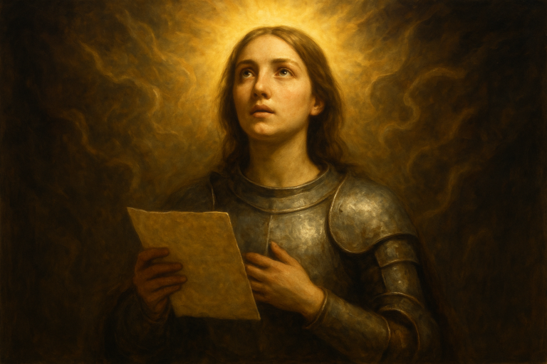 Mohla snad všechny tyto informace sdělit budoucímu francouzskému králi Karlovi VII., když ho poprvé potkala? Byl právě to důvod, proč jí svěřil vojsko a nechal ji bojovat s královským erbem ve znaku?