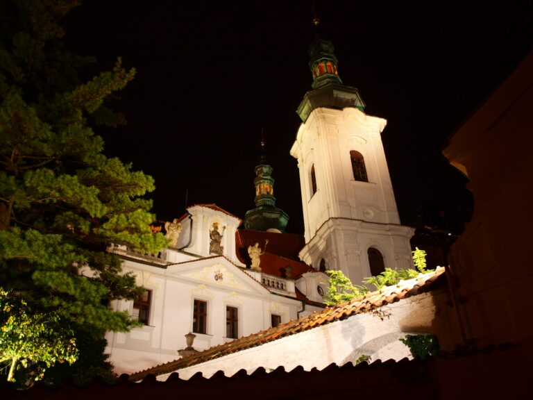 Strahovským klášterem obchází několik přízraků, jedním z nich je děsivý kostlivec. Strahovský klášter v noci Klášter byl svědkem mnoha dramatických událostí.